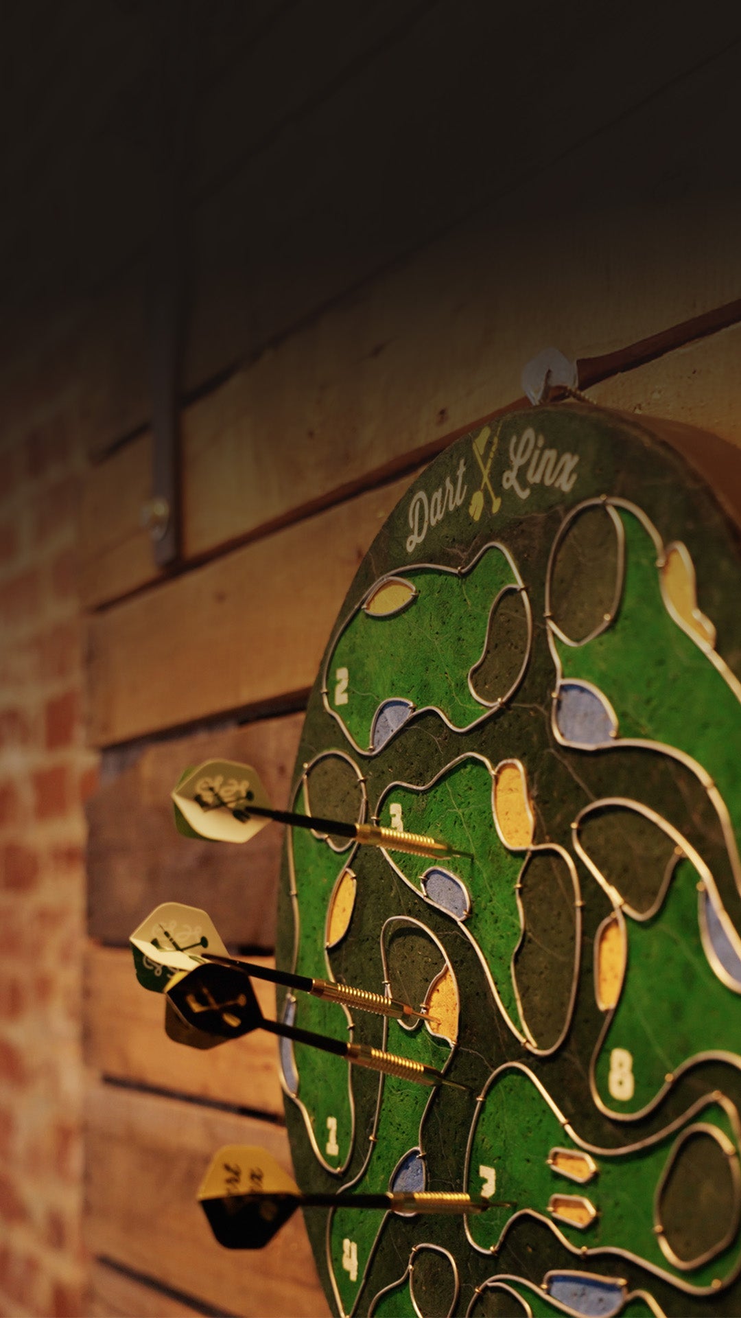 Watch for hazards and get a feel for the course. Then, grab your darts, quiet the crowd, and tee off with your first throw.